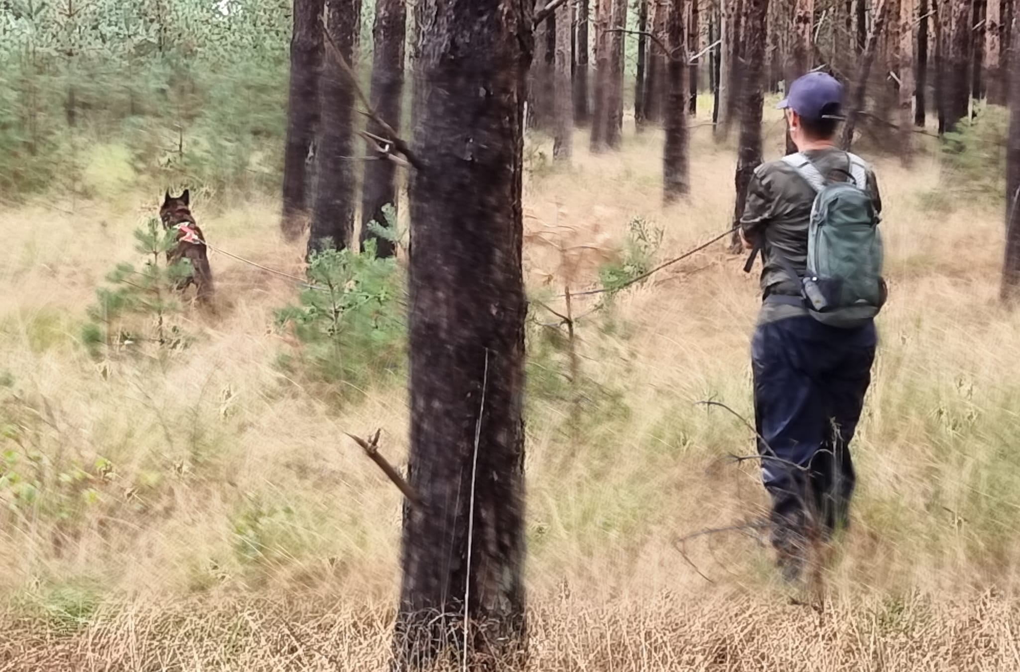 Het werk vindt plaats in open gebieden zoals bossen, heide, weilanden, duinen, bergen en heuvels. De hond wordt gestuurd in de vlakte door de geleider van links naar rechts om het hele zoekgebied af te zoeken. Zodra de hond het slachtoffer gevonden heeft, gaat hij het aangeven met blaffen, tot de geleider bij het slachtoffer en hond is.